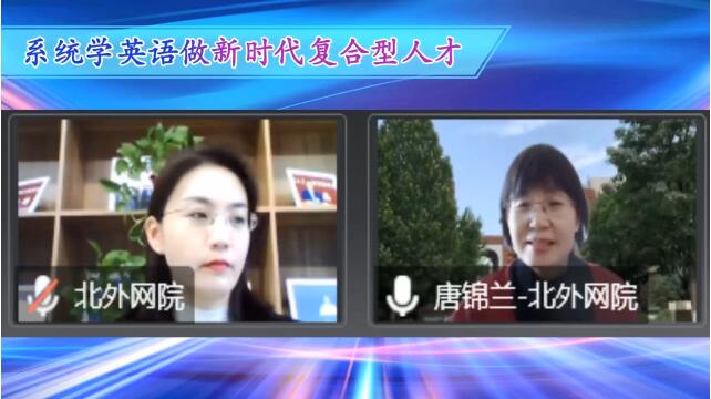 北京外国语大学发挥20多年远程教育智慧助学经验,开办北外“互联网+”自考助学辅导班,为了有效助力培养新时代复合型人才,该项目于2022年8月24日—9月28日主办“系统学英语,圆梦在北外”系列直播活动,邀请北外网络教育学院院长唐锦兰教授、副院长蔡静副教授,以及多位授课教师出席此次活动,围绕“互联网+高等教育自学考试助学”进行深度探讨!