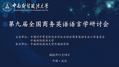 全国商务英语语言学研讨会自2014年召开以来,已先后在对外经济贸易大学、中国海洋大学、广东外语外贸大学、湖南大学、四川外国语大学、西南财经大学、北京语言大学、上海财经大学举办了八届,成为广大商务英语师生学术交流的平台,推动了商务英语国际学术共同体构建。第九届全国商务英语语言学研讨会由中国对外贸易经济合作企业协会商务英语专业工作委员会和中南财经政法大学联合主办,中南财经政法大学外国语学院承办。研讨会拟定于2022年11月18-19日在武汉举办。本届会议将探讨国家经济形象传播背景下的商务英语学术前沿话题,诚挚邀请国内外专家、学者和师生拨冗与会,共同交流学习。